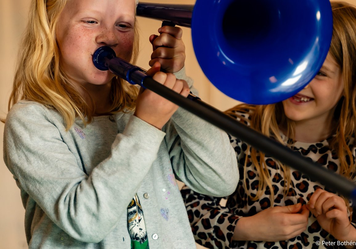 Prova på brassinstrument med lärare från Nacka Musikskola och minikonserter med musikskolans brasselever.