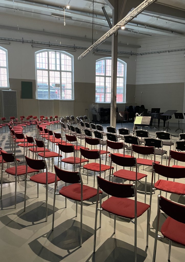 Mitt i Sicklas kulturkvarter, Järnvägsgatan 17, finns stora, ljusa och luftiga lokaler i tre våningsplan med alla bekvämligheter. Här hittar du Vindverket på hela 304 kvm som passar för både konferenser, mässor, repetitioner, konserter och inspelningar med upp till 150 personer. Lokalen är både lättillgänglig och samtidigt avskild för olika evenemang och har egna foajéer för servering och pauser.